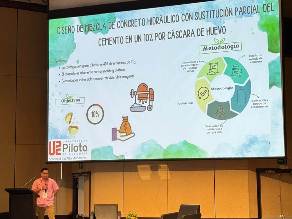 El talento y la innovación de la Universidad Piloto de Colombia, Seccional del Alto Magdalena, brillaron en el EIEI ACOFI 2025, realizado en Cartagena de Indias. En este importante escenario académico a nivel nacional e internacional, los estudiantes Miller Andrés Rocha y Jeimy Carolina Roa, del Programa de Ingeniería Civil, recibieron un reconocimiento por su proyecto titulado “Diseño de mezcla de concreto hidráulico con sustitución parcial del cemento en un 10% por residuos de cáscaras de huevo para la producción de estructuras sostenibles”.