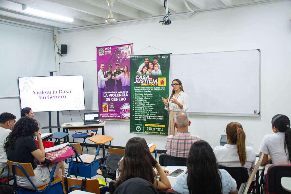 En el salón A101 se desarrolló una charla sobre las rutas de atención a víctimas de violencia de género. La actividad fue liderada por la dirección y representantes de la casa de la Justicia, y el apoyo interno del área de promoción desarrollo, POU y salud de bienestar institucional, quienes explicaron su labor y los procedimientos que se siguen en distintos casos.